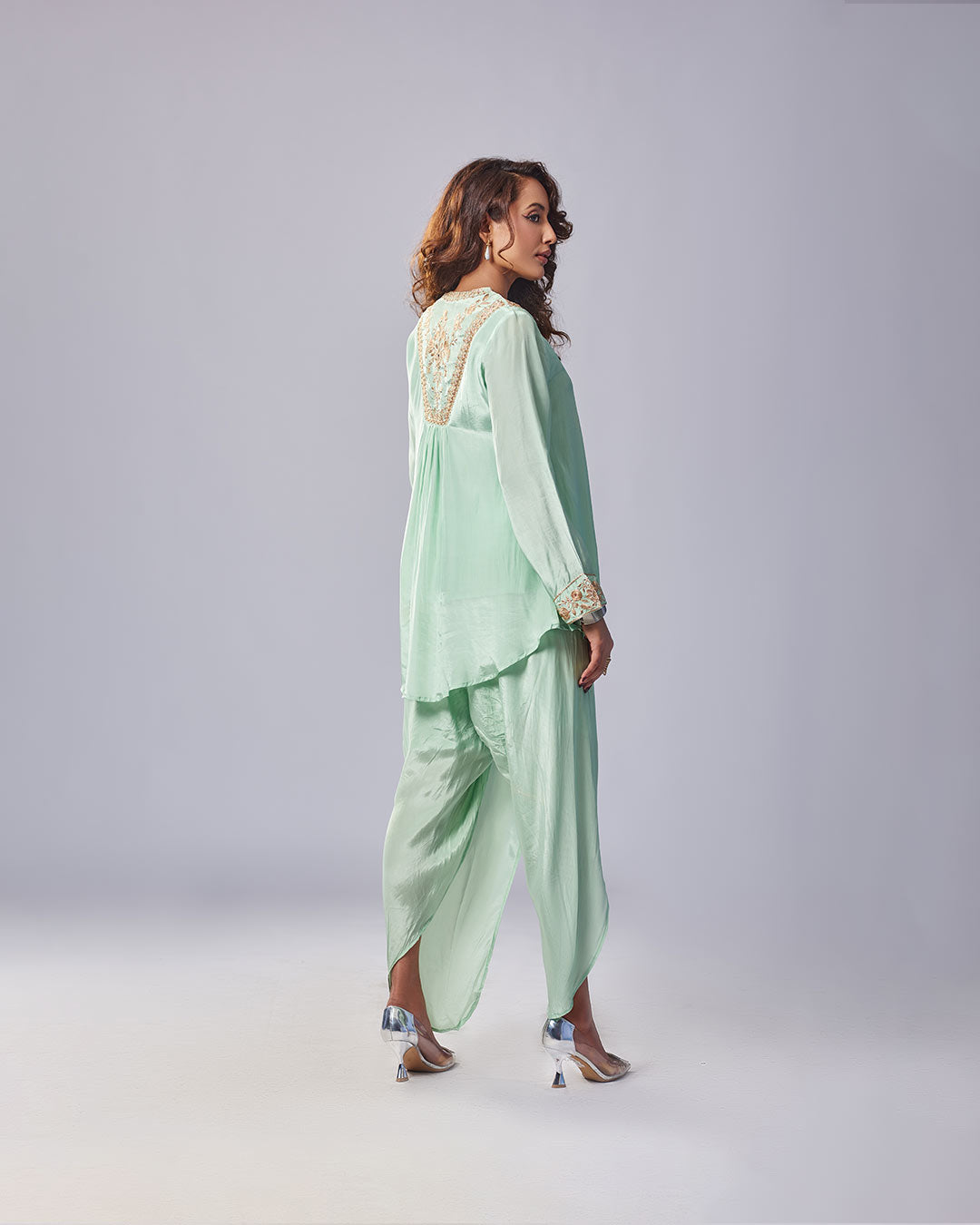 Product Name: Mint Green Elegance Embroidered Kurthi With Dhoti Plazo – Pakistani Look by Mayju
